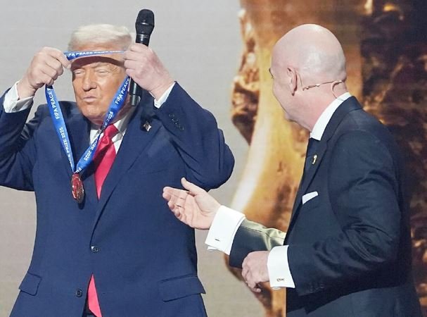डोनाल्ड ट्रंप का नोबेल शांति पुरस्कार के लिए प्रेम किसी से छिपा नहीं है। ऐसा माना जा रहा है कि फीफा द्वारा इस साल से शुरू किया जा रहा है शांति पुरस्कार ट्रंप को ही मिलेगा। वैसे बी फीफा के वर्तमान अध्यक्ष जियानी इन्फेंटिनो को ट्रंप का करीबी माना जाता है। वह कई बार खुले तौर पर इस बात को कह चुके हैं कि गाजा संघर्ष में युद्धविराम करवाने के लिए ट्रंप को नोबेल शांति पुरस्कार मिलना ही चाहिए। फीफा के अगले विश्वकप के लिए आयोजित किए जा रहे एक कार्यक्रम में जियानी ने अमेरिकी राष्ट्रपति का स्वागत करते हुए ट्रंप को यह पुरस्कार देने का ऐलान किया। उन्होंने कहा, यह आपके लिए एक सुंदर मेडल है, जिसे आप जहां चाहें, वहां पहन सकते हैं। इसके बाद ट्रंप ने तुरंत ही इसे अपने गले में डाल लिया। इसके साथ ही ट्रंप को एक सर्टिफिकेट भी दिया गया, जिसमें ट्रंप को दुनिया में शांति और एकता बढ़ाने में योगदान देने वाला बताया गया।